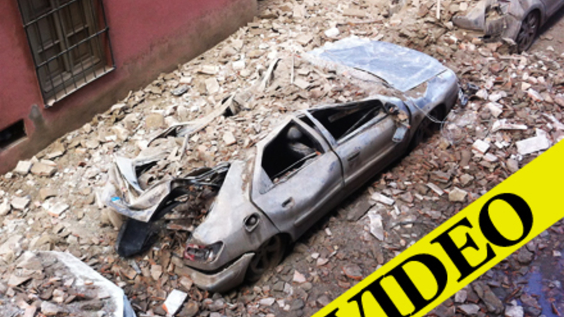 I Málaga blev fire biler smadret af nedfaldende mursten fra en gammel bygning.