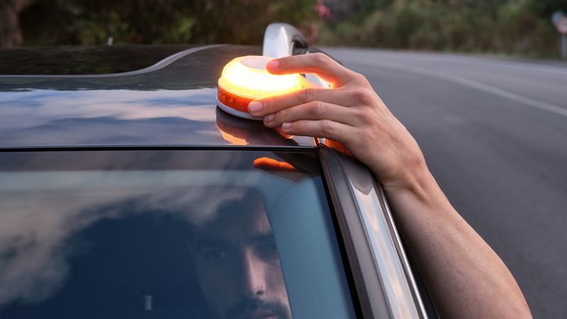 Sikkerhed: Fordelen er, at du kan sætte lygten på taget gennem vinduet uden at skulle stige ud af bilen på en potentielt farlig motorvej, og gå langt for at opsætte trekanten.