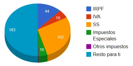 Arbejdere skal bruge de første 102 dage af deres lønindtægter på at betale sygesikringsafgift, de næste 41 dage på indkomstskat (IRPF), yderligere 25 dage på at betale moms, og de sidste fem dage for at klare andre afgifter.