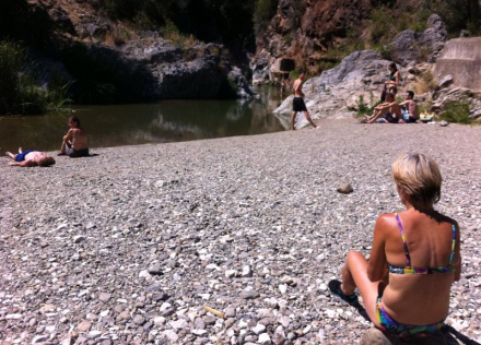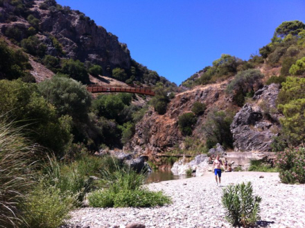 Nu er der kun cirka ti kilometer til paradis, og du kan godt begynde at glæde dig. Kør rundt og lige ud i rundkørslen med Benahavís-bogstaverne i midten, ligeud et par kilometer, og når du kan se en flot træbro på din højre hånd, skal du sætte farten ned, og gøre klar til at parkere.