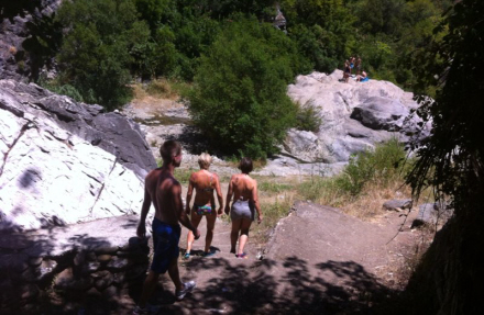 Vi var der i juli, og det er helt perfekt. Vandet kan godt lige give et gys i første hug, men herefter er det bare skønt at være afkølet. Når du er færdig med at plaske rundt med alle turisterne, der ikke aner, hvad der gemmer sig lige rundt om hjørnet, skal du bare følge vandstrømmen nedad.
