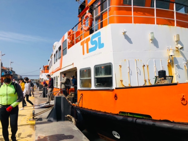 Turen fra færgen går man langs med vandet, hvor der er udsigt til den smukke røde bro Ponte 25 de Abril