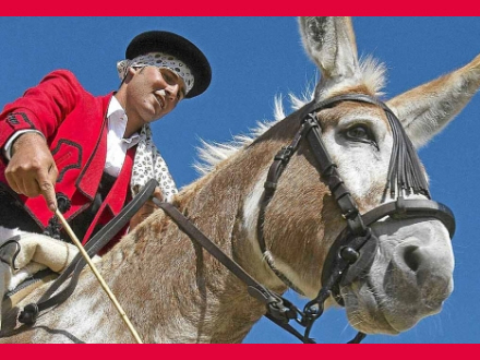 Når 'Caramelo' ikke turnerer landet rundt, bor han sammen med sin æsel-kone og parrets æsel-føl i Montellano i Sevilla Provinsen.