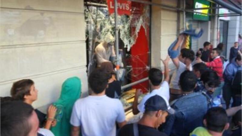 Flere hundrede unge autonome gik på et tidspunkt amok og smadrede butiksvinduer, oversprøjtede facader med grafitti og satte ild til biler.