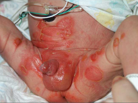 En lille dreng med den uhyggelige sygdom