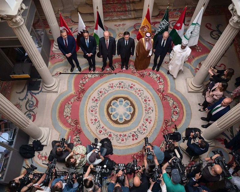 I mødet deltog Qatars premierminister, Mohammad Mustafa og udenrigsminister, Sheikh Mohammed bin Abdulrahman bin Jassim al-Thani; Jordans vicepremierminister og udenrigsminister, Ayman Safadi; den saudiske udenrigsminister, prins Faisal bin Farhan, og hans tyrkiske kollega, Hakan Fidan; samt OIC's generalsekretær, Hussein Brahim Taha. Den egyptiske minister, Samé Shukri, som ikke kunne deltage i onsdagens møde, fordi han er på en officiel rejse til Kina, besøger Madrid næste mandag.