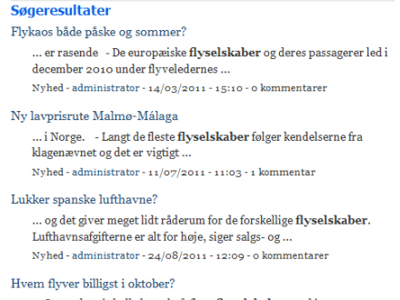 Skriv for eksempel ”flyselskaber” i søgefeltet