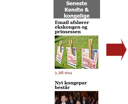 Hvis du eksempelvis er inde og læse en nyhed om 'Kendte & kongelige' vil du i det nye system automatisk få de seneste nyheder i samme tema i den smalle kolonne til højre for nyheden.