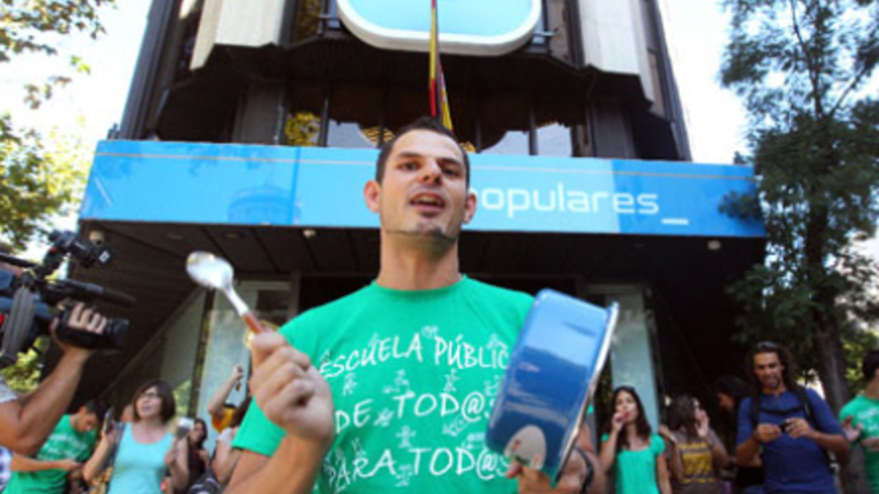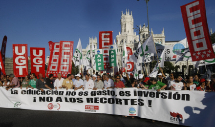 Tusindvis af lærere i ti spanske regioner er på barrikaderne i protest mod de varslede nedskæringer indenfor undervisningssektoren.