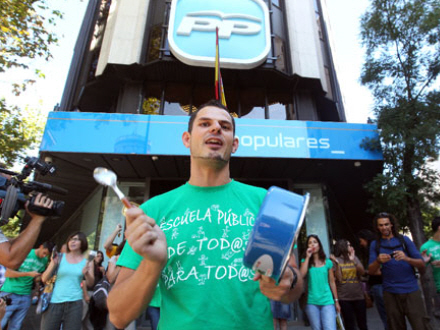 I Madrid har 45 procent af lærerne i de offentlige skoler i dag nedlagt arbejdet i protest mod nedskæringen af 3.300 vikarstillinger, et krav om flere elever i klasserne samt en stigning i lærernes undervisningstimer.