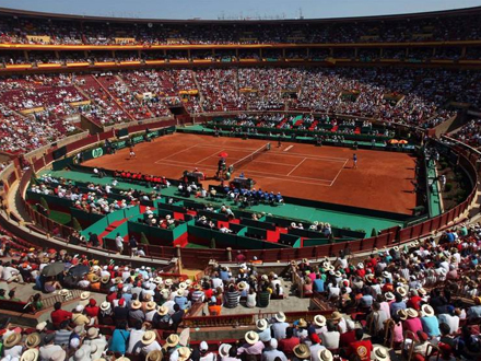 Fredag startede semifinalen i den festligt dekorerede tyrefægter-arena. Grusbanen var i perfekt stand, selvom den måtte fejes og vandes tit i det 35 grader varme vejr.