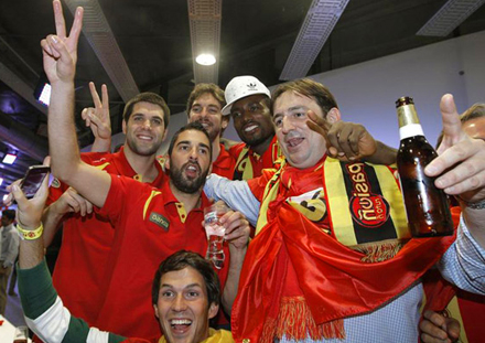 Kronprins Felipe var til stede og fejrede sejren sammen de mange tusinde tilrejsende spaniere