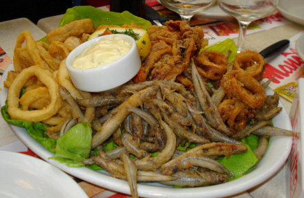 Eftersom byen ligger lige ud til havet, kan du naturligvis nyde ”alt godt fra havet”. Blandt specialiteterne er tun, søtunge og blæksprutte. Priserne er meget rimelige. Vi fandt en strandbar, som lå "lidt af vejen" med dejlig sød og opmærksom betjening.