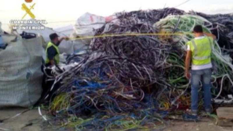 Under en omfattende politioperation i Madrid og Valencia blev der beslaglagt henholdsvis 45- og 120 ton kobber, aluminium og messingkabler.