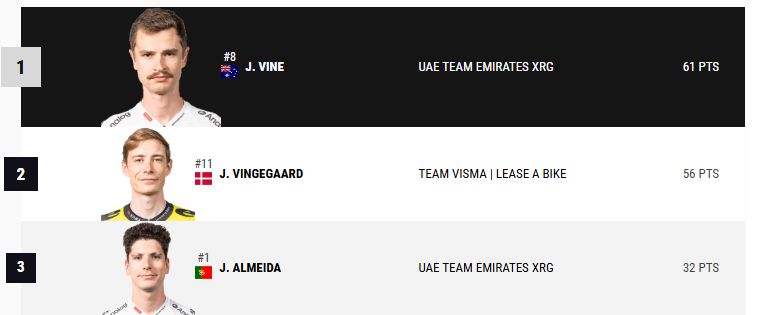Ja, for de spanske kommentatorer havde lige fra løbets start Jonas som favorit til at vinde løbet. Og i rigtigt mange tilfælde under etaperne spurgte de om, hvorfor Jonas ikke nu stak af fra de andre? Og der blev gisnet meget om, hvorfor han på de sidste stigninger bare holdt sig i baghjulet på sin nærmeste rival, portugiseren Joao Almeida.