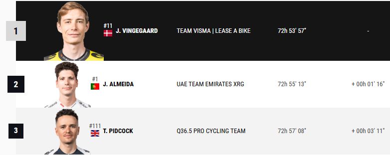 Jonas vandt årets La Vuelta på grund af tiderne noteret ved lørdagens etape, som han jo også vandt.