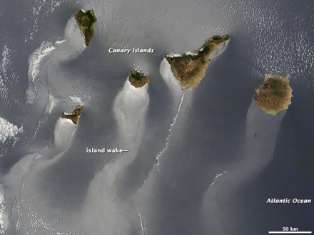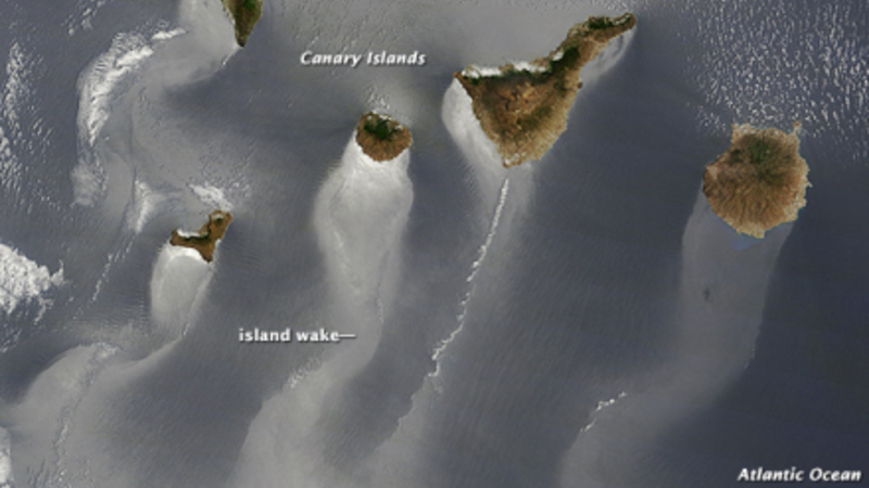 Generelt blæser det fra den nordlige del af De Kanariske Øer, hvor øernes bjerge så bremser vinden og får den til at skifter retning. På læsiden af bjergene kan vinden piske eller udglatte overfladen af havet, således at lyset reflekteres forskelligt.