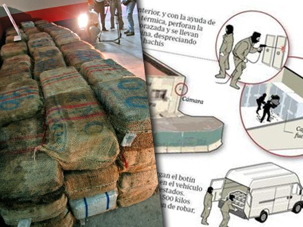 Meget tyder på, at gerningsmændene først deaktiverede sikkerhedsalarmerne ved indkørslen til narkolageret, der ligger centralt på kajen Muelle Heredia i havnen i Málaga Centrum. Derefter brød tyvene porten til hallen op og kørte ind på lageret med deres egen varevogn, som blev fyldt op med narko, indtil tyvene havde fået fat i det, de ville have.