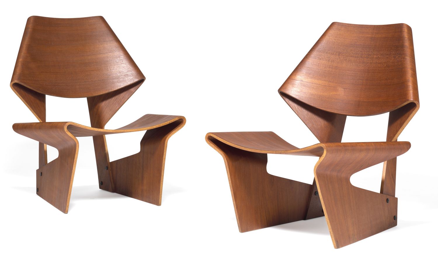 To af disse originale stole af formspændt teakfinér fik et flot hammerslag på 380.000 kr.