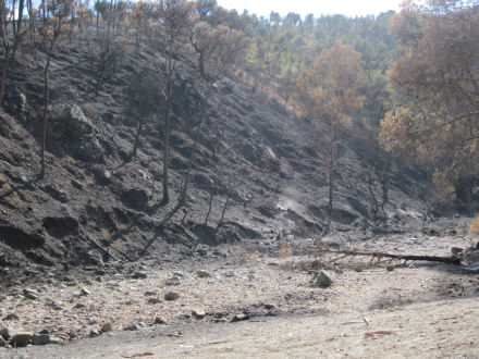 Kæmpeområder i bjergene er fuldstændigt svedet af. Her ved Coín-vejen