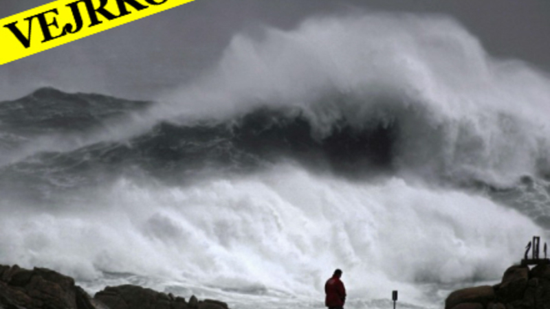 Her er der varsel om storm og helt op til ni meter høje bølger langs kysterne. Myndighederne advarer om, at tagsten kan blæse ned, grene kan knække af træerne og skilte kan vælte.