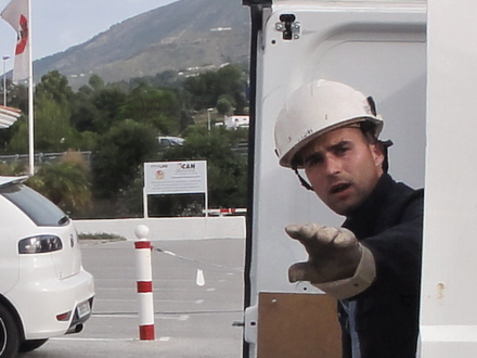 Og det var lige inden, han ikke skulle have gjort det... Pludselig var alle tre elektrikere meget tæt på med flere truende gestikulationer.