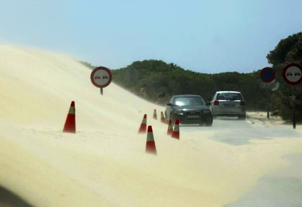 Problemet er langt fra nyt og skyldes tiltagende sandflugt. Sidste år blev flere familier i Punta Paloma isoleret, da sandet fra den imponerende Paloma-klit dækkede vejen, så bilerne ikke kunne kom frem eller tilbage.