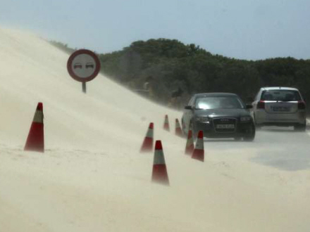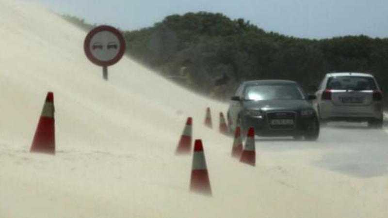 Beboerne har i lang tid forsøgt at råbe myndighederne op og advaret mod faren for, at klitten flytter sig hen over vejen CA 2325, der er eneste vej til og fra området. Efter flere dages kraftig blæst, blev frygten er til virkelighed.