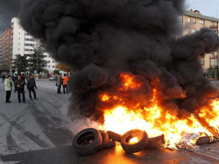 I Burgos har strejkevagter tændt bål for at forhindre adgang til et industriområde