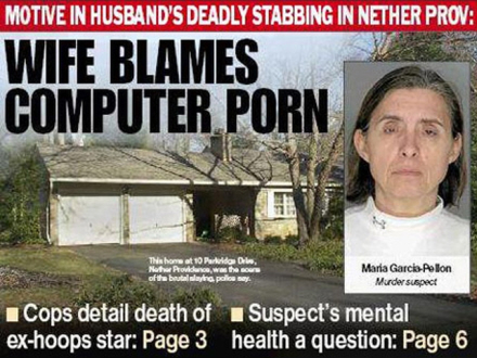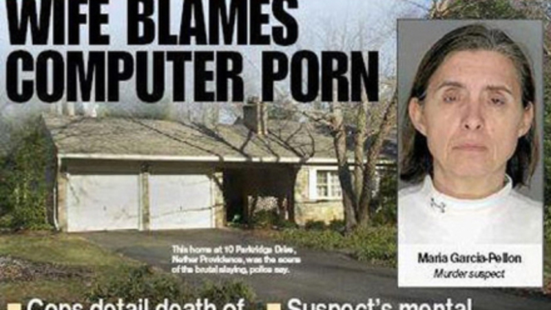 Kvinden blev anholdt i parrets hjem i Nether Providence i Pensylvania og tilstod at hun havde stukket sin mand ihjel, fordi han så børneporno. Drabet skete natten til mandag, mens manden lå og sov.