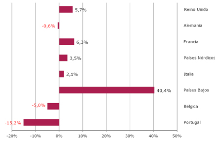 Mens det tyske marked har svigtet med en nedgang på 0,6 procent, er der igen fremgang for de øvrige nordeuropæiske markeder. I januar var næsten to ud af 10 turister i Spanien fra England, hvilket svarer til en stigning på 5,7 procent i forhold til året før. Også antallet af turister fra de nordiske lande er steget. Her er stigningen på fem procent og står dermed for 10 procent af det samlede marked. Tyskerne tegner sig samlet for godt 15 procent.