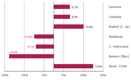 For Andalusien og Valencia er der sket en nedgang på henholdsvis 10 og 9 procent.