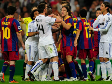 At tabe er aldrig sjovt. At tabe til arvefjenderne er endnu værre. Det var netop, hvad der skete, da Real Madrid og Barcelona i bogstaveligste forstand tørnede sammen på Santiago Bernabeu i Madrid i den første Champions League-semifinale mellem de to ærkerivaler.