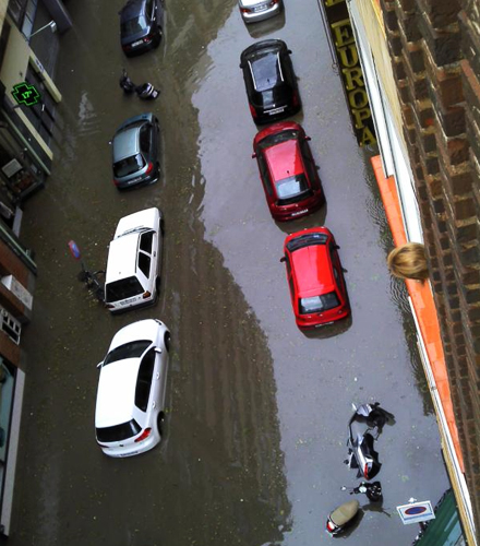 Da uvejret stilnede af, kunne beboerne så gå i gang med at gøre rent efter mudder og vand, som var trængt ind i husene.