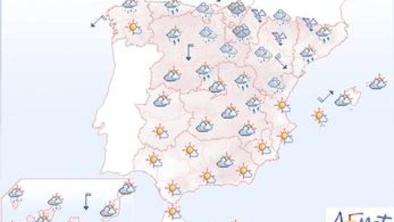 Opklaring langs Middelhavskysterne og stigende temperaturer. I Sydspanien bliver det mest tørt og klart.