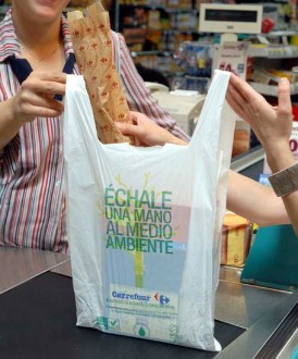 Carrefour satte sidste år en stopper for udlevering af gratis poser. Den officielle forklaring var, at supermarkedskæden ville gå over til et miljøvenligt og nedbrydeligt plastikmateriale, som ville koster kunderne 10 cents.
