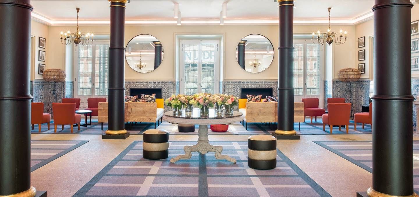 I receptionen mødte jeg den venlige medarbejder. Jeg ville helst have taget mine billeder fra en etage så højt oppe som muligt, men da alle værelser var optaget blev det fra Søjlesalen på 1. sal.