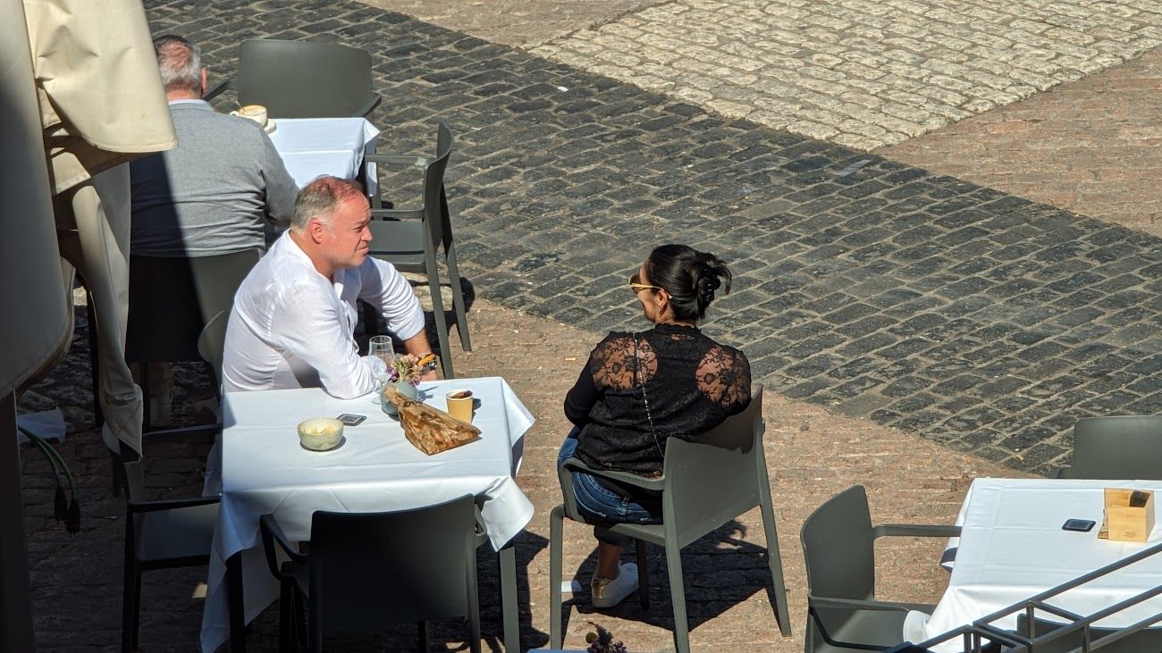 Jeg kontaktede derfor hotellet Pestana, der delvist har facade til Plaza Mayor. De lovede at tage godt imod omkring klokken 12:00.
