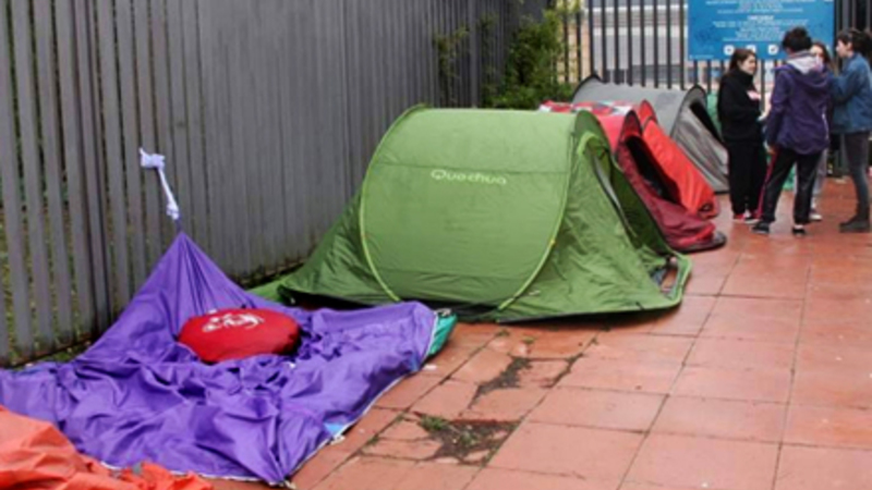 En ung mand fortæller, at han camperer på vegne af sin kæreste, fordi hun er i skole om morgenen morgenen, “har ting at lave” om eftermiddagen, og hendes forældre vil ikke lade hende sove i et telt uden for stadion i løbet af ugen.