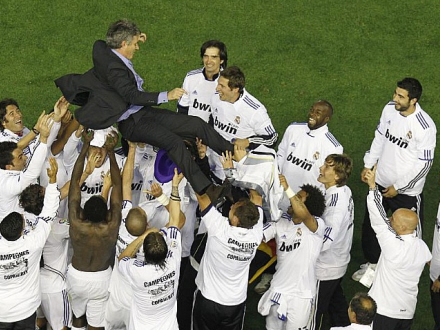 Efter tre år uden titler lykkedes det endelig for Real Madrid at hive et mesterskab hjem, men det var ikke længe, at de stolt kunne fremvise det synlige bevis. Forsvarsspilleren Sergio Ramos tabte nemlig trofæet fra spillerbussen under fejringen i nat, hvorefter bussen kørte hen over pokalen! Festen bliver lige sat på stand by et stykke tid, og en synlig panik breder sig blandt fodboldheltene, der dog ikke overvejer at stige ned fra bussen og gøre noget ved sagen...