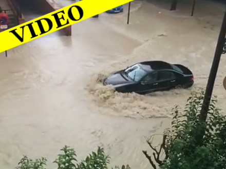 Uvejret, der de seneste dage har hærget flere steder i landet, skaber store forsinkelser i flytrafikken. Det voldsomme regnvejr forvandlede gader til floder, og biler sejlede omkring.