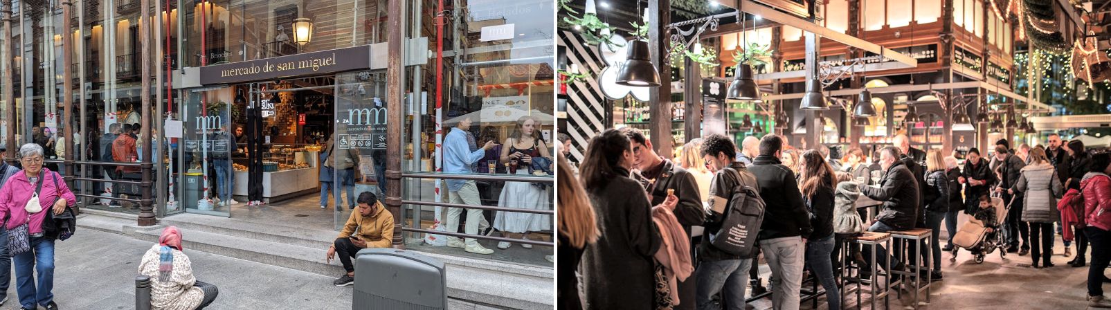 På vej tilbage til hostallet for lidt benstræk besøgte vi Mercado de San Miguel. Det er bare stedet, hvor man kan bestille hvilken som helst tapa eller forfriskning. Det virkede næsten som om, at hele Madrid var samlet dér for at fejre arbejdsugens afslutning og weekendens komme.