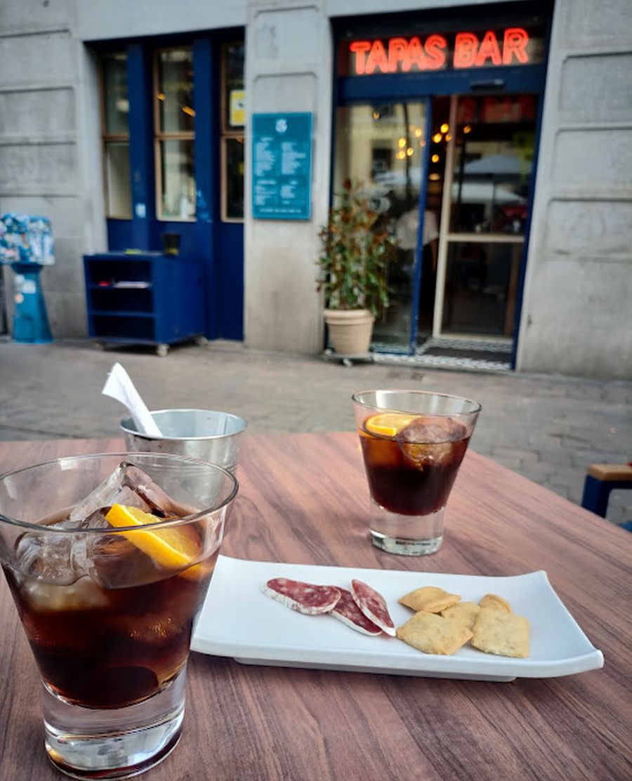 Mens Andrea fik udnyttet den sidste tid på legepladsen, sagde vi farvel til vores hyggelige plads med et glas Vermut, inden vi gik ned til Atocha