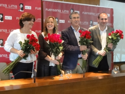 Borgmesterkandidat Fuensanta Lima, Udenrigsminister, Trinidad Jiménez, Mijas' nuværende borgmester, Antonio Sánchez, og organisationssekretær for PSOE i Málaga, Francisco Conejo