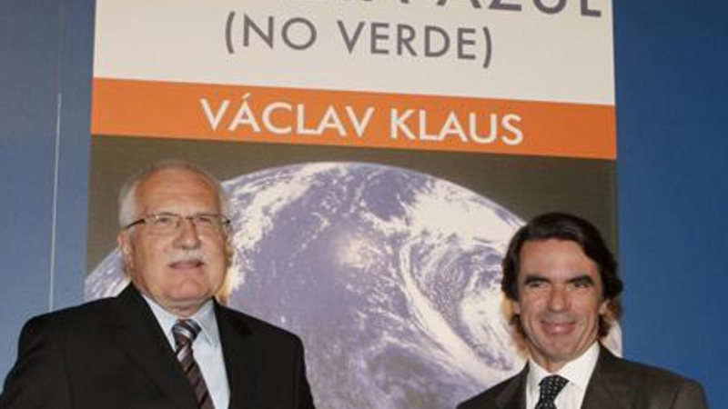 I sin fremlæggelse af bogen Planeta Azul (Den blå Planet) siger Aznar, at han er imod, at der i krisetider afsættes millioner og millioner til bekæmpelse af klimaændringer.