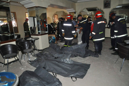 Øjenvidner fortæller til nyhedsbureauet AFP, at de så en mand bestille et glas juice på terrassen af Argana de Marraquech. Baren ligger lige ved et af de mest trafikerede torve i byen. Få minutter senere sprang han ud fra terrassen og udløste samtidig en bombe, som eksploderede lige over det tætpakkede torv.
