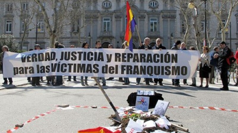 Ofrene for det tidligere diktatur bar fotos af forsvundne familiemedlemmer og bannere med slogans som "Straffrihed for Franco-regimet, nej tak".