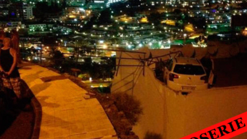 Dramaet foregik i Puerto Rico på Gran Canaria mandag aften, hvor bilen med tyskeren ved rattet fløj direkte over på taget af en bygning.