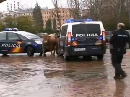 Betjentene var ikke lige vant til at håndtere et frit-gående slagtedyr på 280 kg, og det tog derfor noget tid, inden de i bedste tyrefægter-stil fik gennet tyren op i en krog, hvorefter den blev aflivet. Inden da nåede tyren dog at gøre livet farligt for flere borgere - blandt andet måtte en mand springe for livet, da hans vej krydsede tyrens midt i et fodgængerfelt.