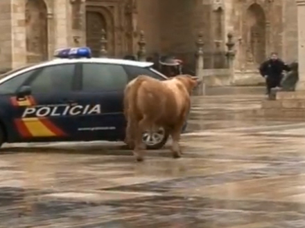 - Pas på! Der er en løs tyr i gaden, råbte en lokal politibetjent i den gamle bydel i provinshovedstaden León i Castilla y León.